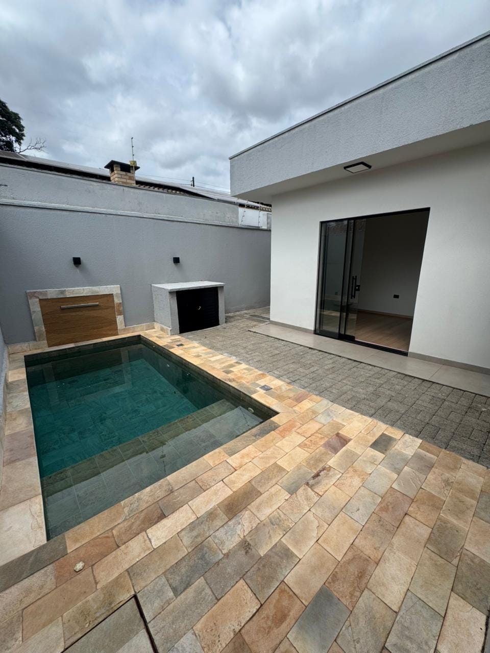 Piscina com cascata, led e hidro