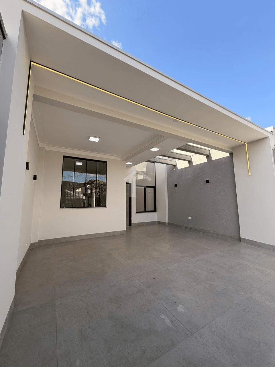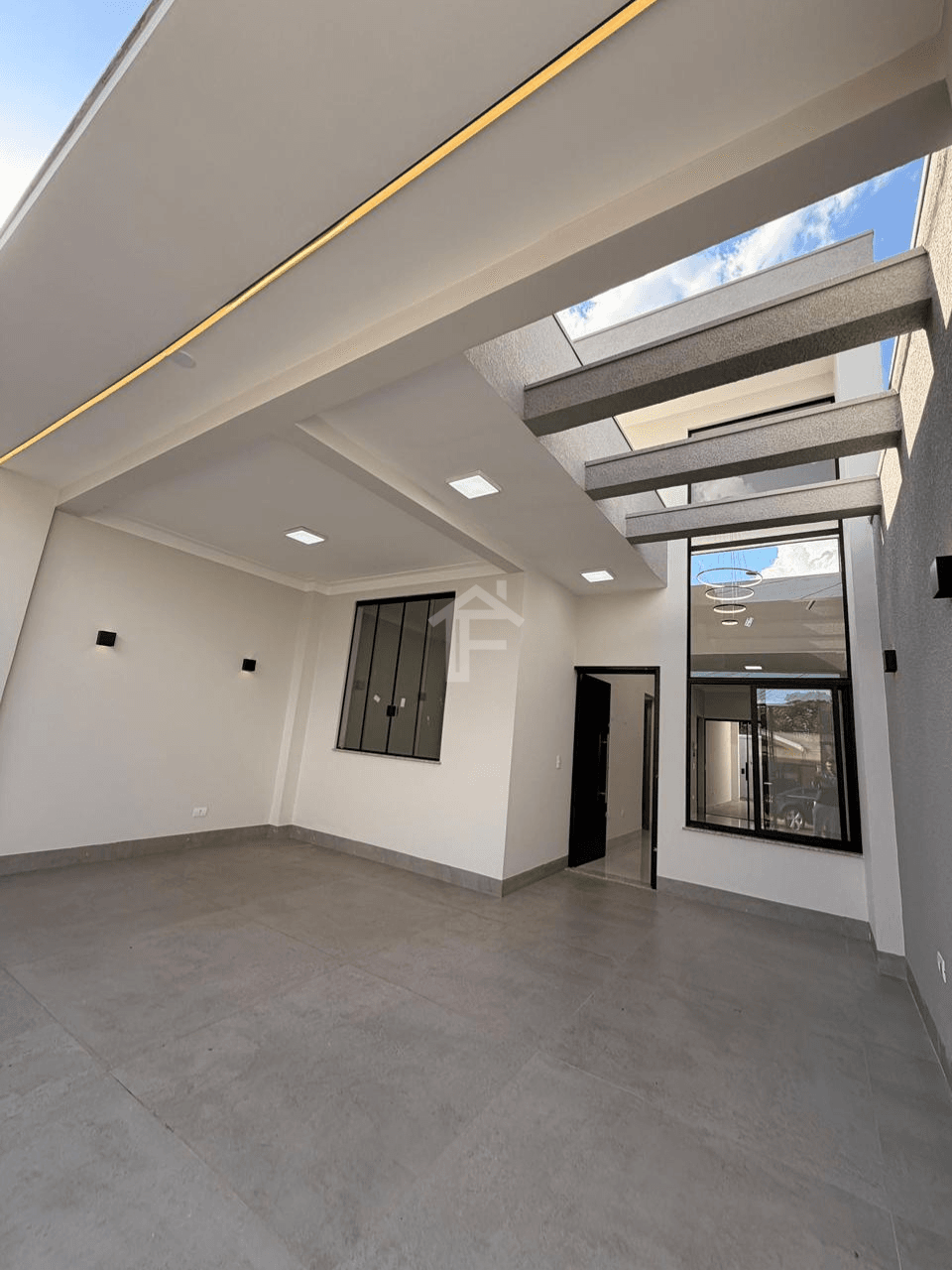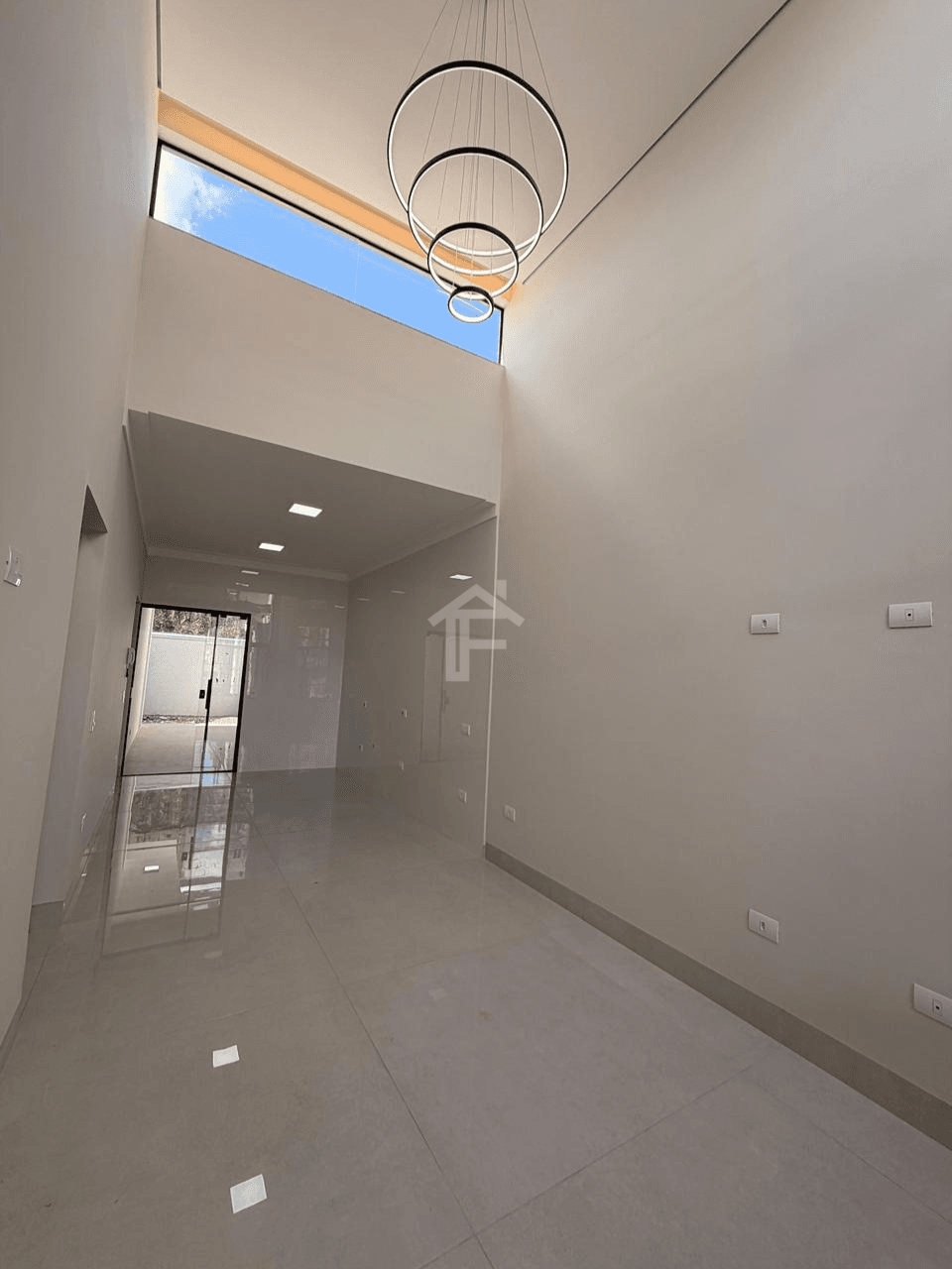 Sala ampla com pé-direito alto